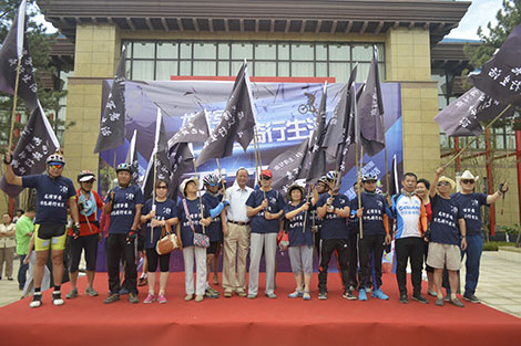 龙湾写意领导授予各领队队长骑行大旗,骑行队伍出发